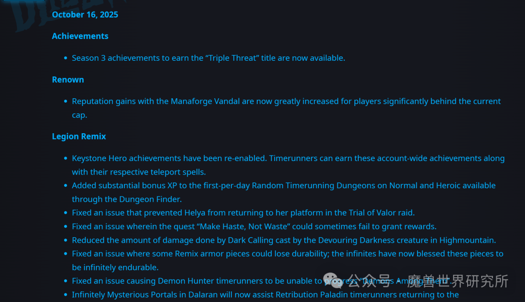 修正了燃烧军团会从多个其他时间线入侵的问题。在一个时间线对抗它们已足矣。
